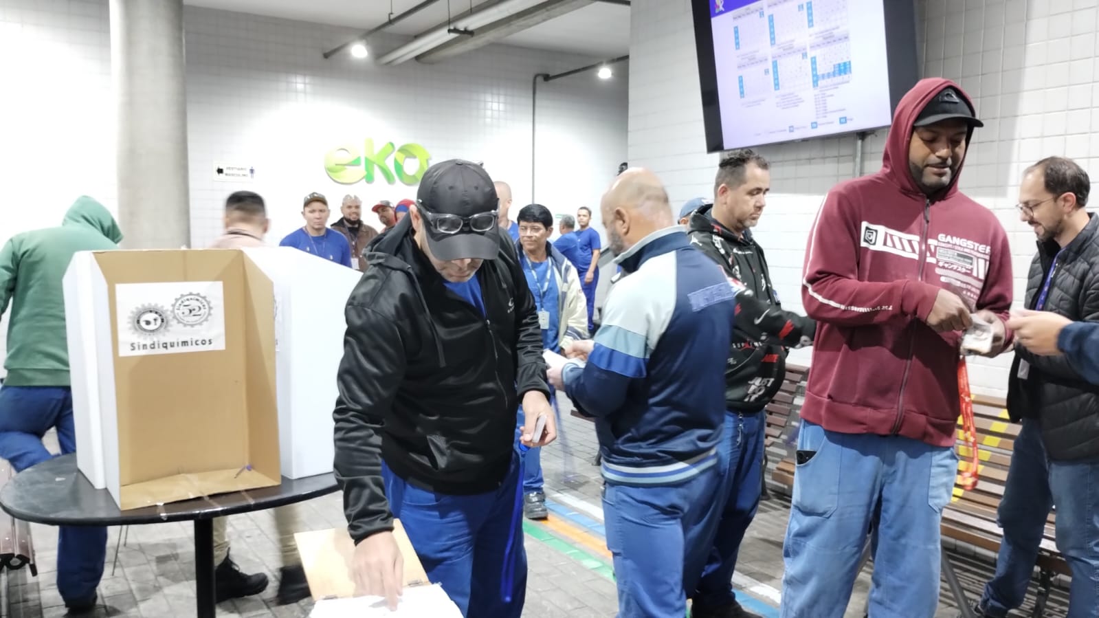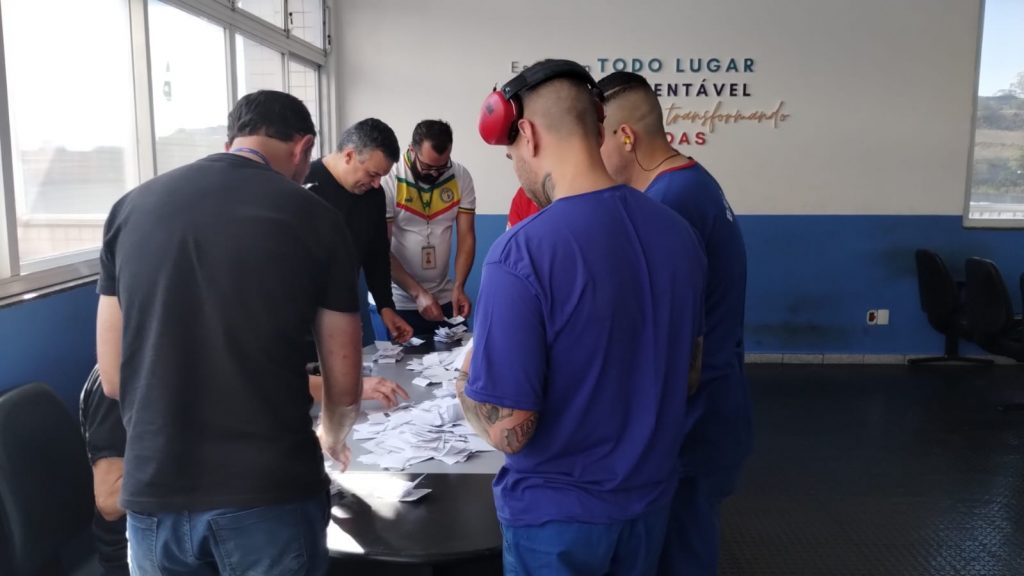 Equipe da Ação Sindical acompanha os diretores Nelson, Luiz e Rui durante votação e apuração da proposta do calendário de pontes e feriados de 2026, na empresa Karina Plásticos, localizada no Jardim Cumbica, Guarulhos/SP. Related Images: Navegação de Post Encontro fortalece servidoras no enfrentamento à violência de gênero Força SP debate terceirização e rotatividade em Guarulhos